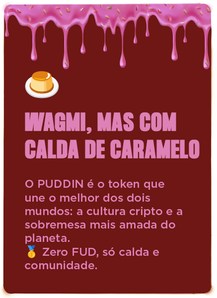 Alimentado por memes, risadas e energia de caramelo, a PUDDIN Gang é a prova de que os investimentos mais doces não são apenas financeiros — são emocionais. Seja pelos memes ou pela missão, sempre há espaço na mesa para mais uma colherada.